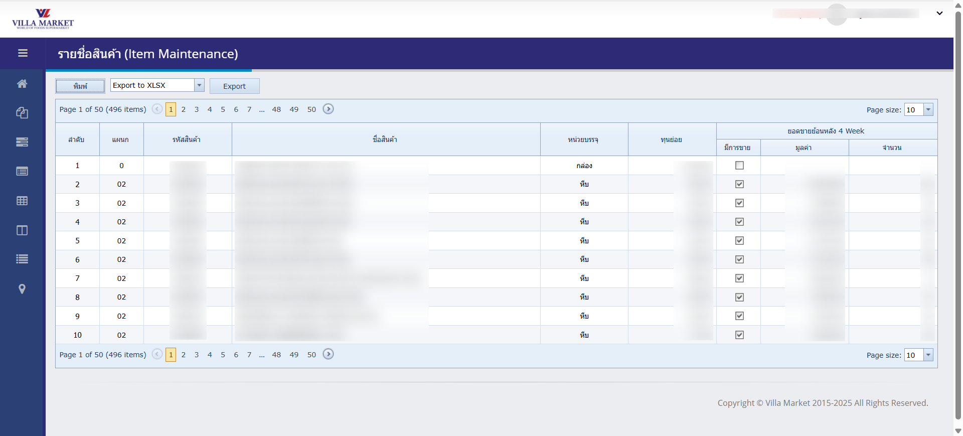 The Item Maintenance menu serves as a powerful tool for viewing and verifying product data within Villa Market’s system. Suppliers can easily review product details, cost information, 4-week sales performance, and unit quantities in one place. With Print and Excel Export functions, users can quickly generate reports or perform further analysis as needed.