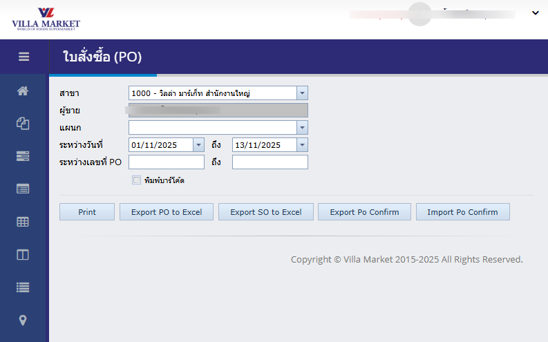 The Purchase Order (PO) menu allows suppliers to quickly and accurately check all purchase orders issued by Villa Market. It ensures proper communication, reduces delivery mistakes, and provides official documentation for accounting and logistics processes.